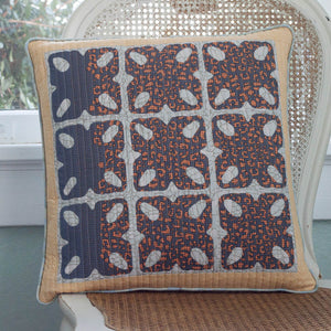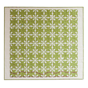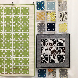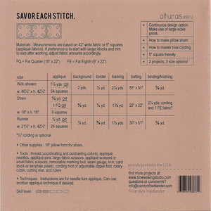 Named after a nearby town, Alturas features a retro-tile-inspired design that is fun to make in a variety of different fabrics and colors. The design also offers up a great opportunity to explore using a large-scale print as the appliqué that can be cut up and sewn into the project, allowing for both the print and appliqué designs to shine.
