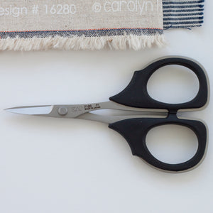 The Kai 7000 professional series is my personal favorite, and I've tried many scissors! This particular one (7100: 4 1/4" scissor) makes the most luxurious snips on any type of fabric--thick or thin. I use this pair for cutting threads or making seam allowance snips when appliquéing, snipping seam allowances in garment sewing or basically anytime I want to up my snipping game.