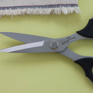 The Kai 7150, 6" scissor is a very versatile and powerful cutting tool. The blade is made of high-carbon stainless steel that ensures a sharp cut, all-the-way to the tip. It also features large handles made of "Elastomer" soft plastic, which are designed for better leverage and ease of handling while cutting.