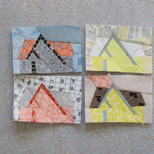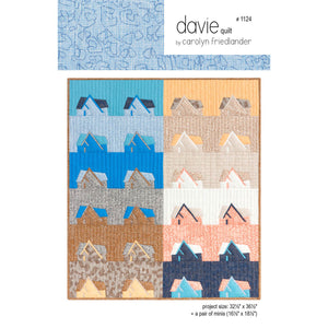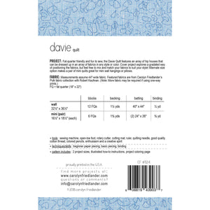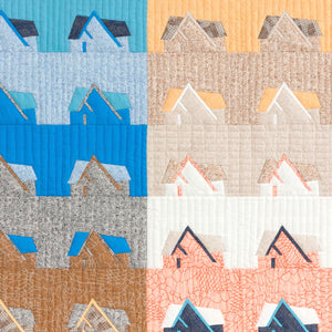 Fat-quarter friendly and fun to sew, Davie Quilt Pattern features an array of hip houses that can be dressed up in a mix of fabrics in any style or color. Cover project explores a gradated way of positioning the fabrics, but feel free to mix and match your fabrics to suit your style! Alternate size option makes a pair of mini quilts great for wall hangings or pillows.