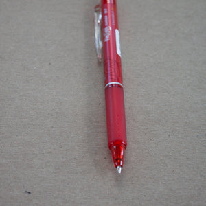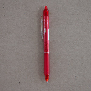 Fine point 0.7mm, tip is retractable by pressing clip down. Red ink.