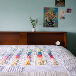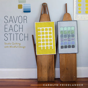 Savor Each Stitch is a design-focused look at quilting with eight different projects that explore the techniques and tools that I use in my own quilt making. As a quilter with a design-school training, it’s what I think about when I think about making quilts, from start to finish. My goal in writing this book was to equip the reader with the skills to make the quilts that they want to make and that will express who they are, while also providing plenty of inspiring projects.