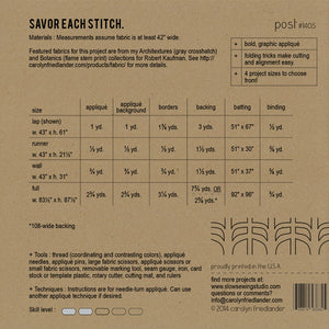 How-to instructions with illustrations, suggested quilting diagrams, directions for making a hanging sleeve