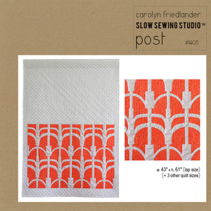 Post was inspired by the beautiful old doors at my local post office in Lake Wales, Florida. I've long admired these doors and knew they'd work their way into a quilt at some point. The graphic shapes make for a fun appliqué!