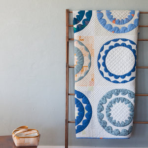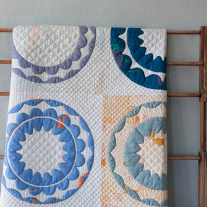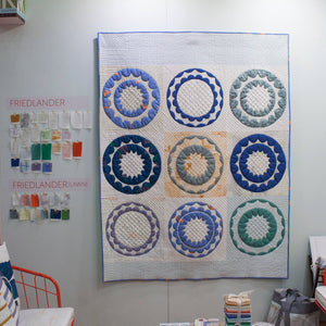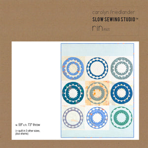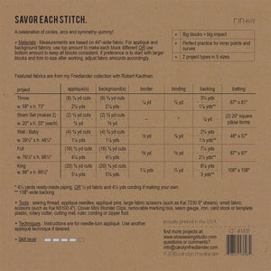 The Rin quilt pattern is a celebration of circles, arcs and symmetry! Big blocks make a big impact in this intermediate-level project, featuring five size options. The design lends itself well to inner-point and curve practice. Instructions are for needle-turn appliqué, but the design can be used with any other appliqué technique as well.