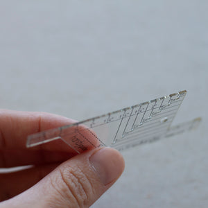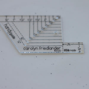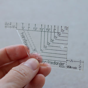 This hand-held guide is helpful for measuring and marking all sorts of stuff while you're sewing. Measurements start at 1/8" and go up from there. Use for marking seam allowance, appliqués, hexagons, hems, corners and much more.