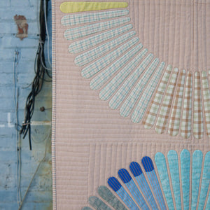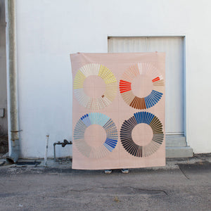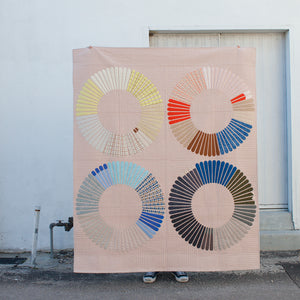 The Hunt quilt pattern is a simple but striking explosion of color in a series of gentle, repeated shapes. The design can take on any number of looks depending on the fabric selection.