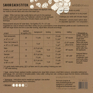 Wildabon is a collaboration of Carolyn Friedlander's appliqué and Leah Duncan's artistic style. The resulting designs bring Leah's iconic florals to life. Pattern includes detailed instruction and a large collection of motifs to appliqué on to any project.
